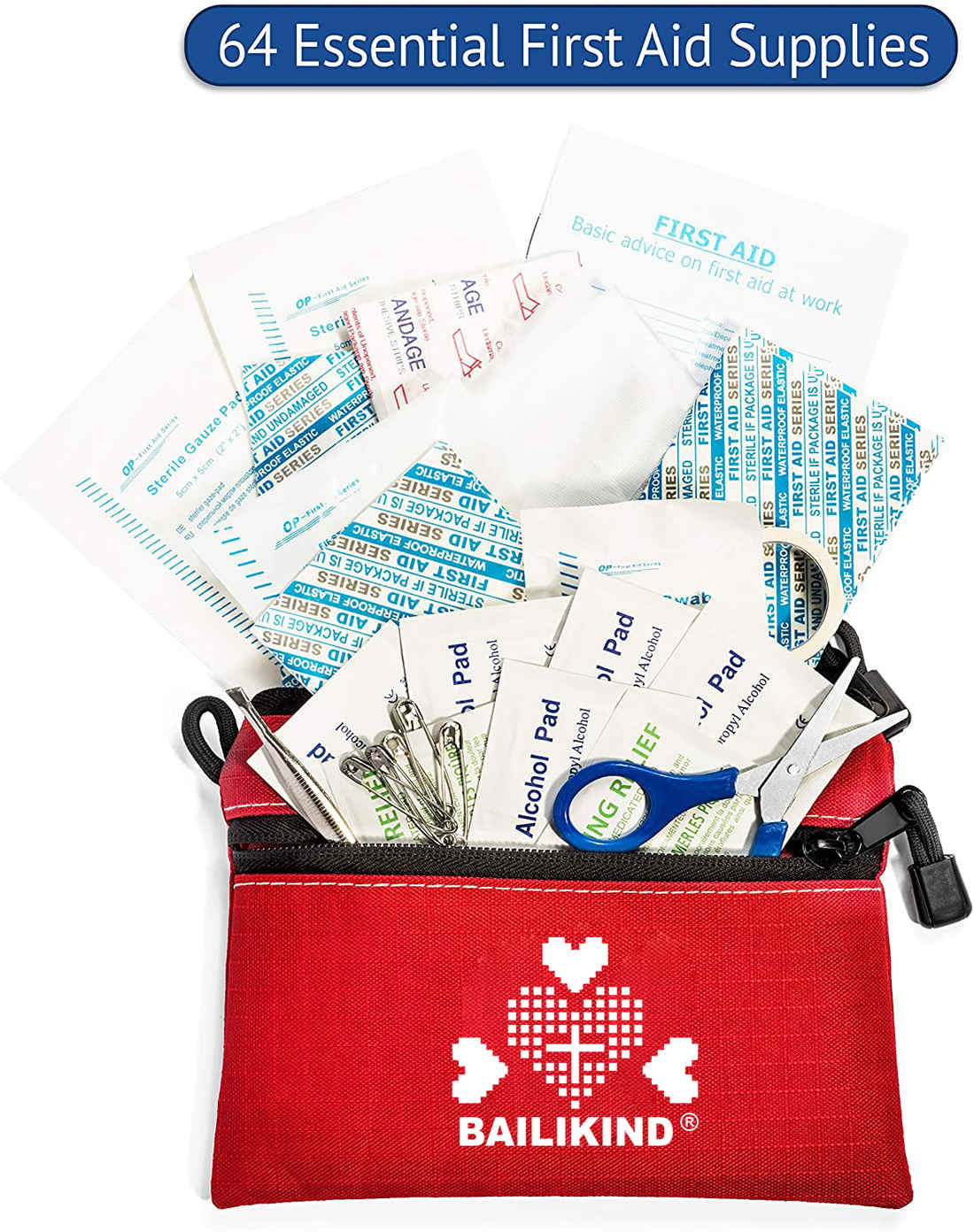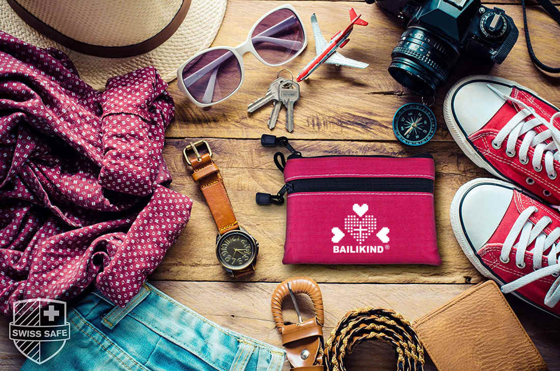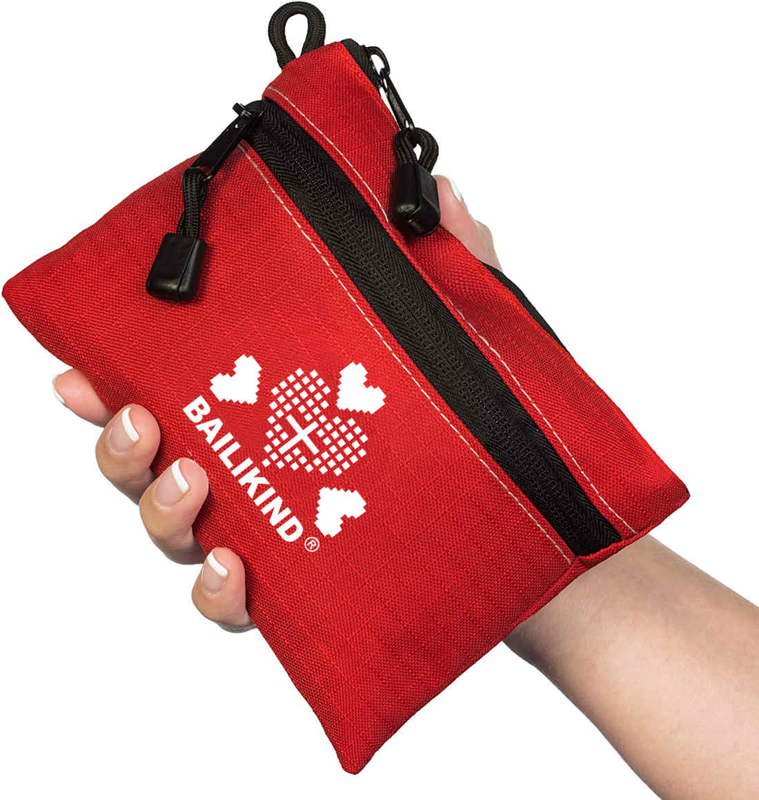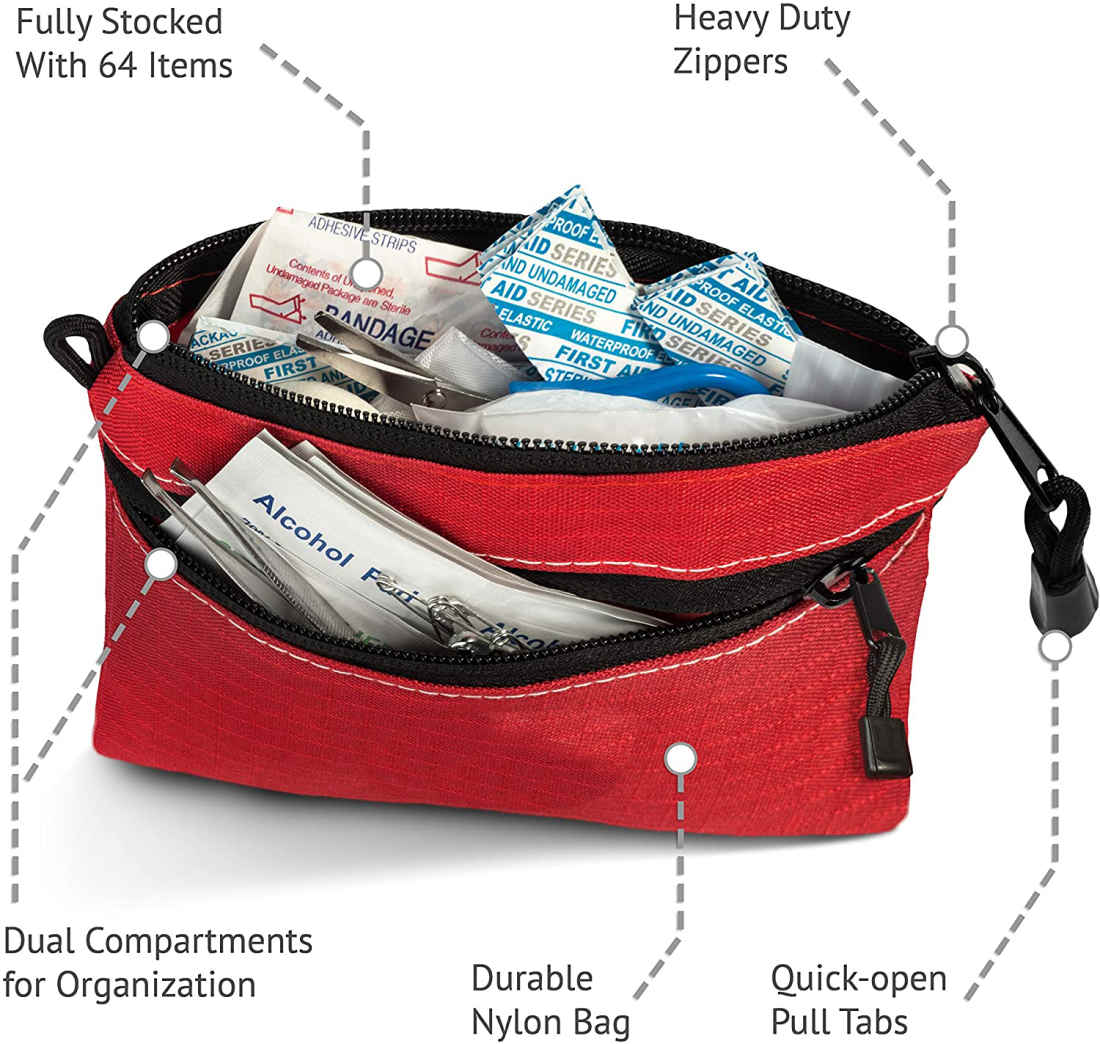 Застосування червоної кишені першої допомоги з подвійною блискавкою: чудовий аварійний набір для щоденного використання або пригод на свіжому повітрі, таких як походи та кемпінг.